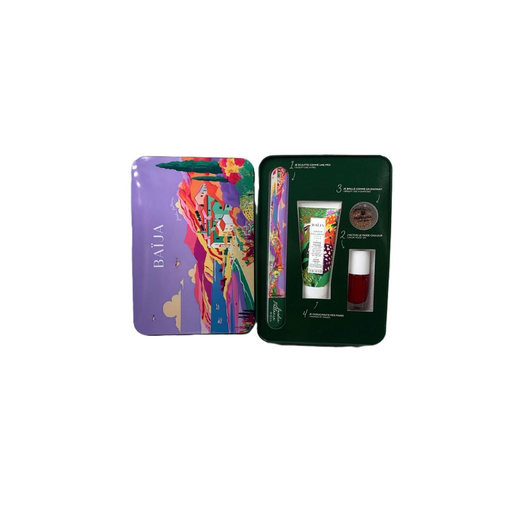 Il tutto racchiuso in una scatola in metallo decorata con illustrazione esclusiva Baïja