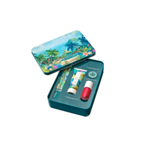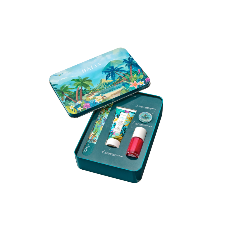 Il tutto racchiuso in una scatola in metallo decorata con illustrazione esclusiva Baïja